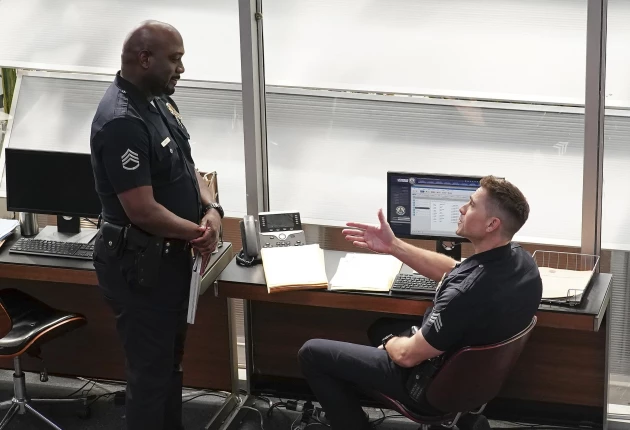 Нолан вместе с Аароном остаются принимать вызовы в отделении. Случайно их внимание приковывают странные полисмены, которых раньше они не видели. После просьбы о предъявлении документов становится понятно, что эти копы – самозванцы и пришли в участок для освобождения товарища.